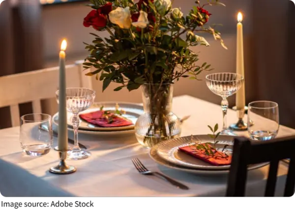 We can create harmony by using shades of the same color, complementary colors, or contrasting tones. Proper color coordination adds rhythm and depth to the table. Popular color schemes include: